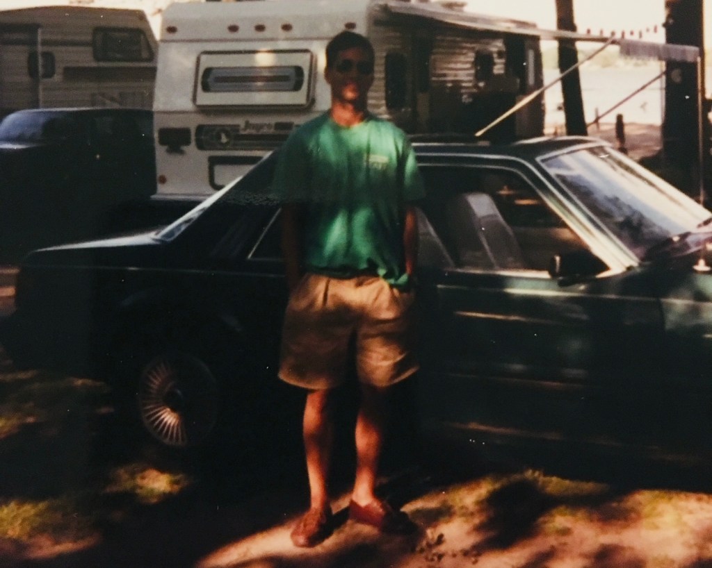 This golden two-door became known as the Grannyada or the Grenade. And it had some battle scars. During a trip to Allegany State Park one weekend, my brother Kevin, a couple friends and I encountered a road that was closed each season from November 1 to March 31. Since it was April 1, we thought it would be totally fine to drive on it, so Kevin headed up the newly opened road. The Grannyada shook and dipped over and into the pits and muddy ruts. At one point as we finally realized we should turn around, the car bottomed out and got stuck. Kevin put the car in reverse. As he powered backward to free the car, it lifted up as if it were on a ramp, only to crash back down to the muddy puddle-filled road. The catalytic converter, still stuck to the exhaust pipe, was sticking out from under the front bumper.